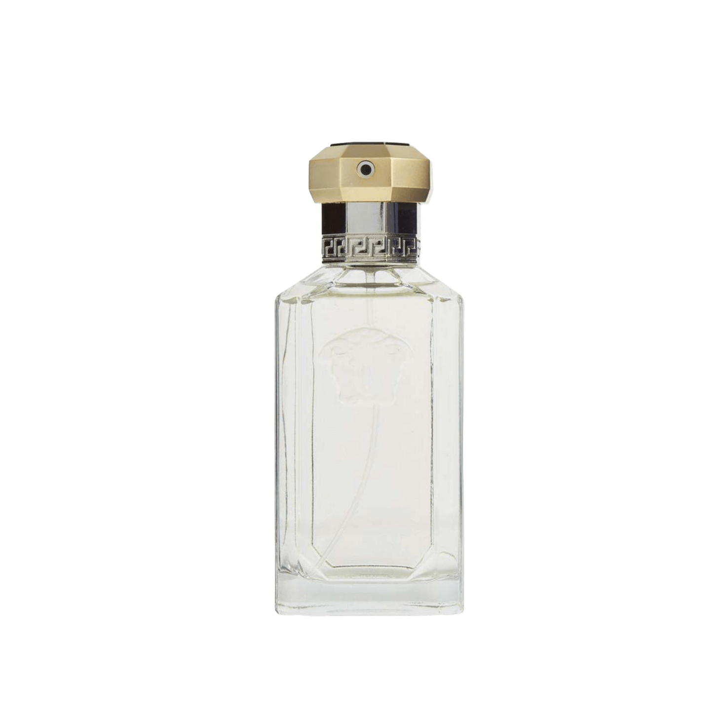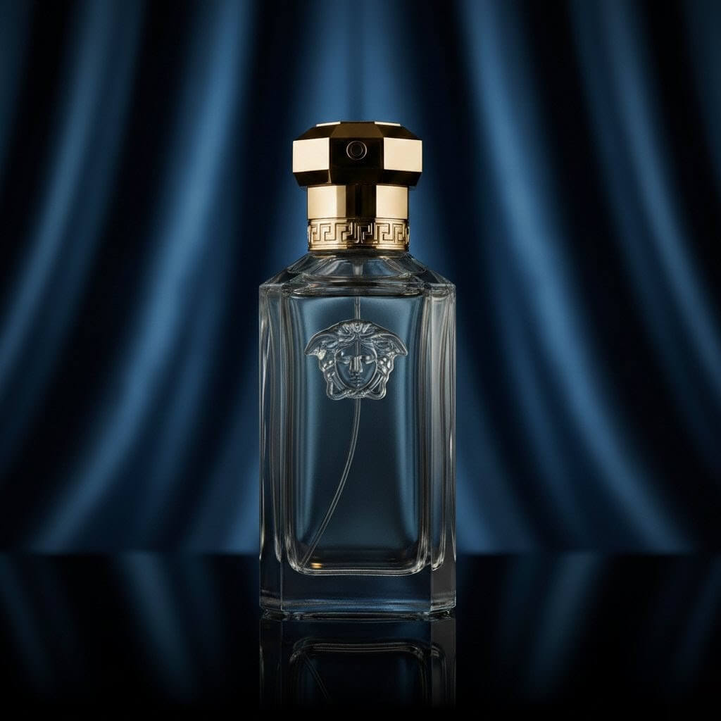 The bottle is a sleek, gunmetal cylinder crowned with Versace’s Medusa emblem. It embodies understated luxury, reflecting the scent’s blend of raw ambition and refined elegance.