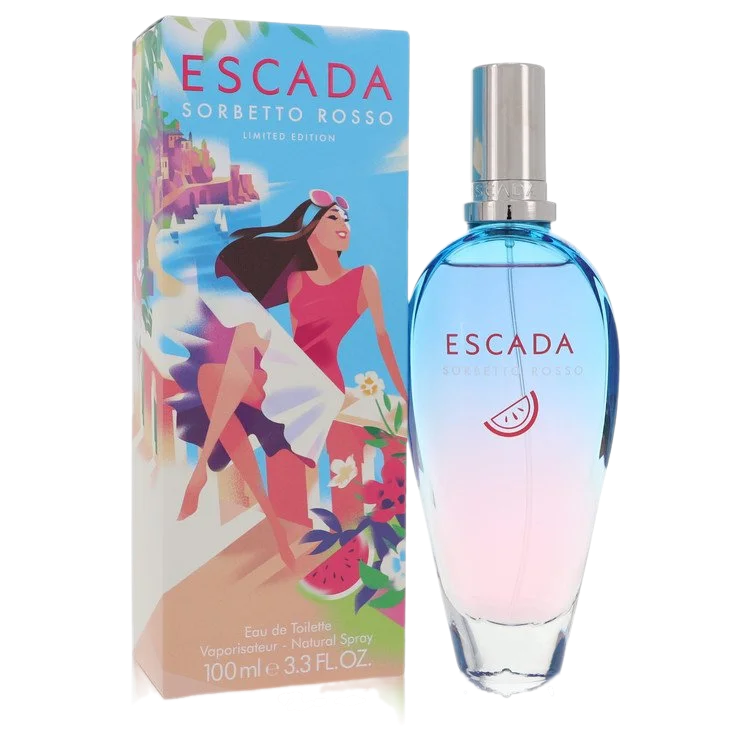 Escada Sorbetto Rosso, unleashed in 2018 by German luxury house Escada, is a juicy escape to the Amalfi Coast. Its Eau de Toilette bursts with pear, tangerine, and calone, flowing into a watermelon-soaked heart, anchored by praline and amber.