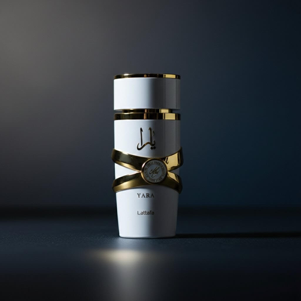 Yara Moi by Lattafa, released in 2022, blends sweet floral notes with warm woods. The white bottle hints at the elegance inside. It opens with fresh jasmine and peach, followed by a creamy heart of caramel and amber.